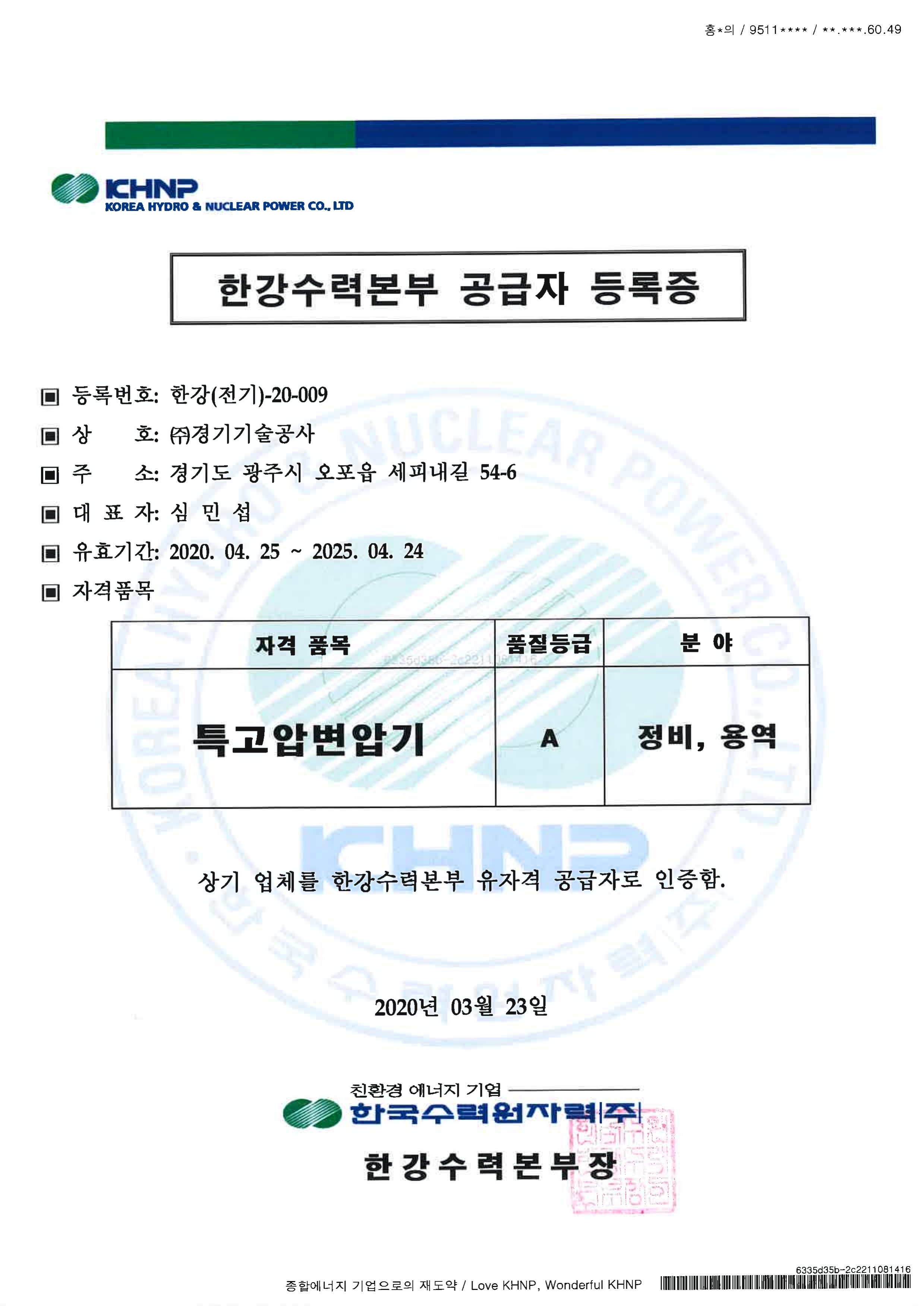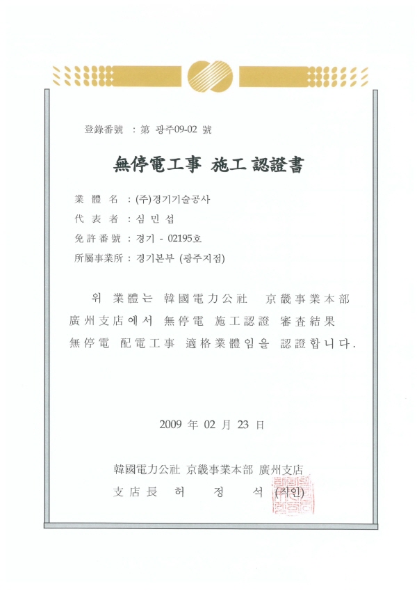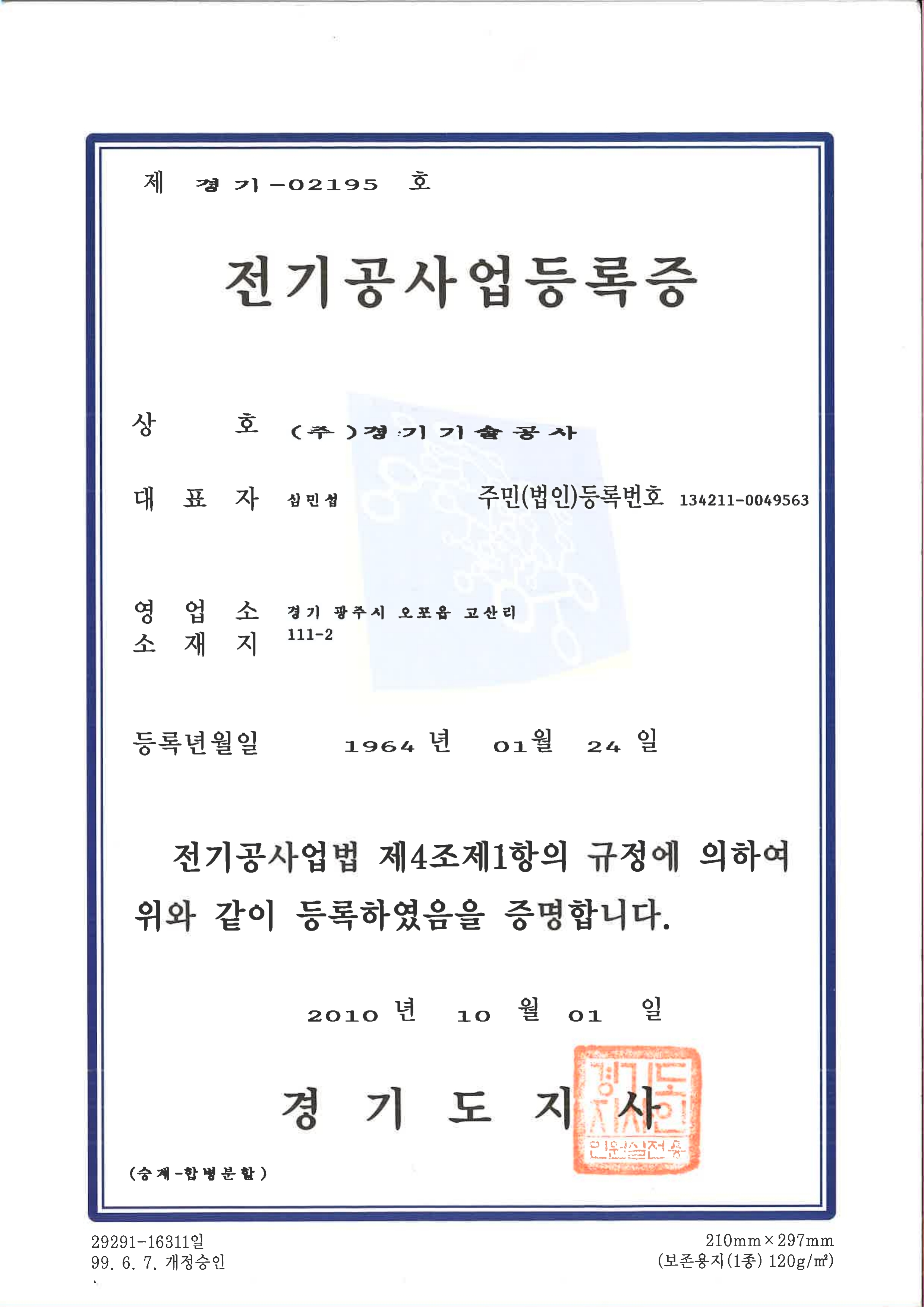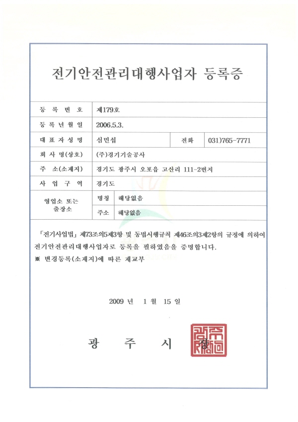 전기공사업 등록증