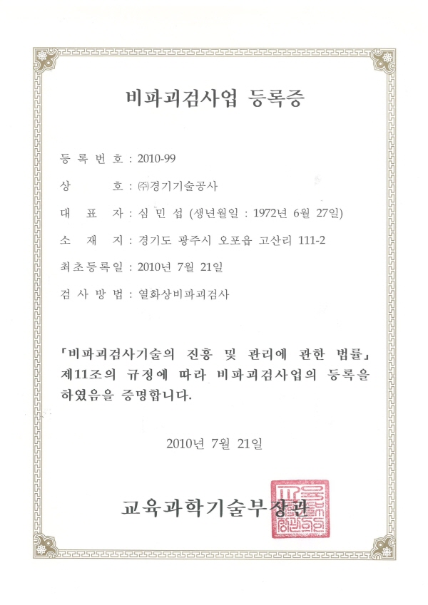 비파괴검사업 등록증