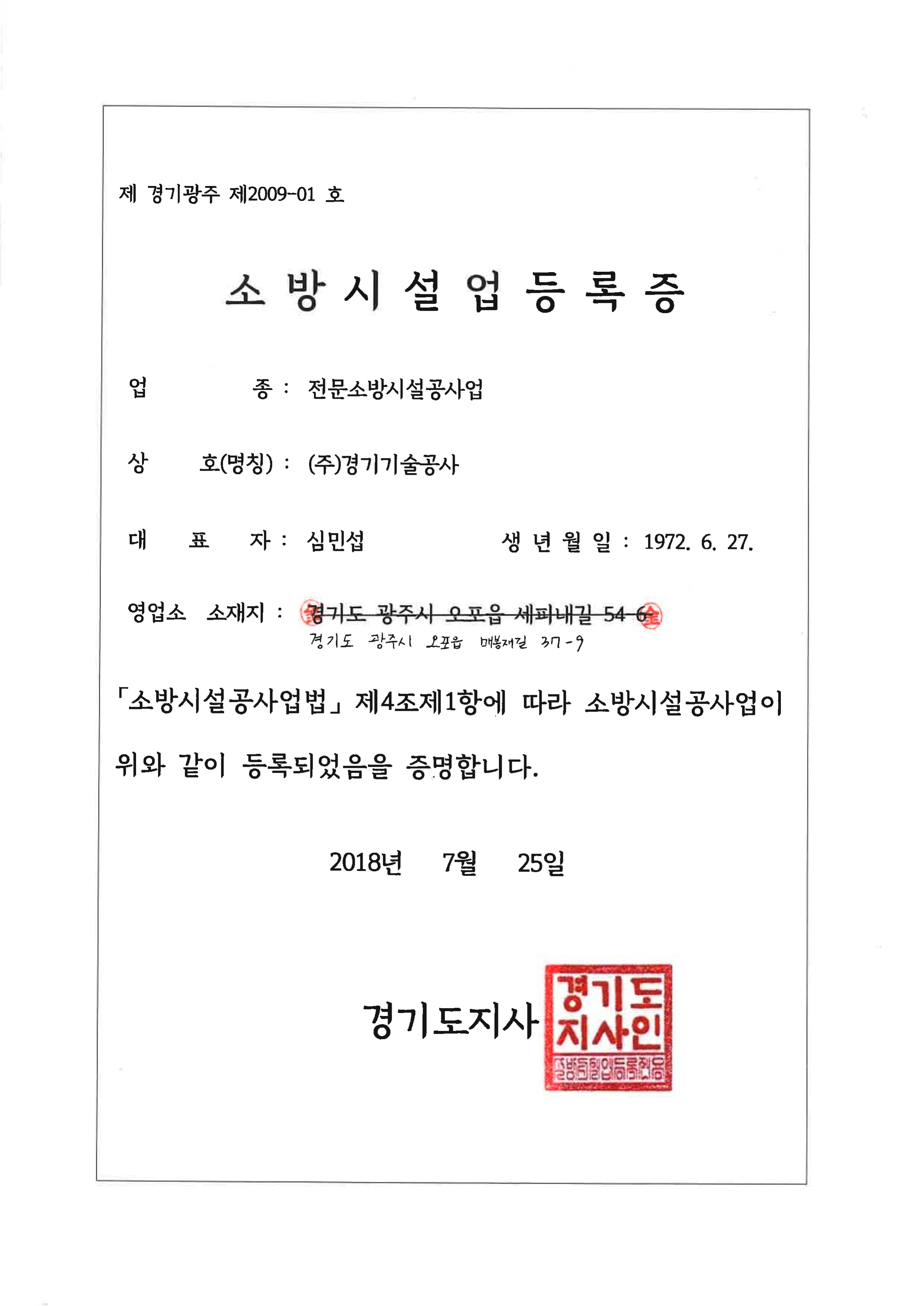 소방시설업 등록증