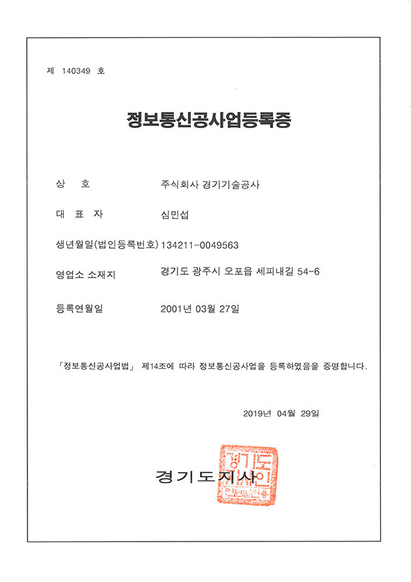 정보통신공사업등록증