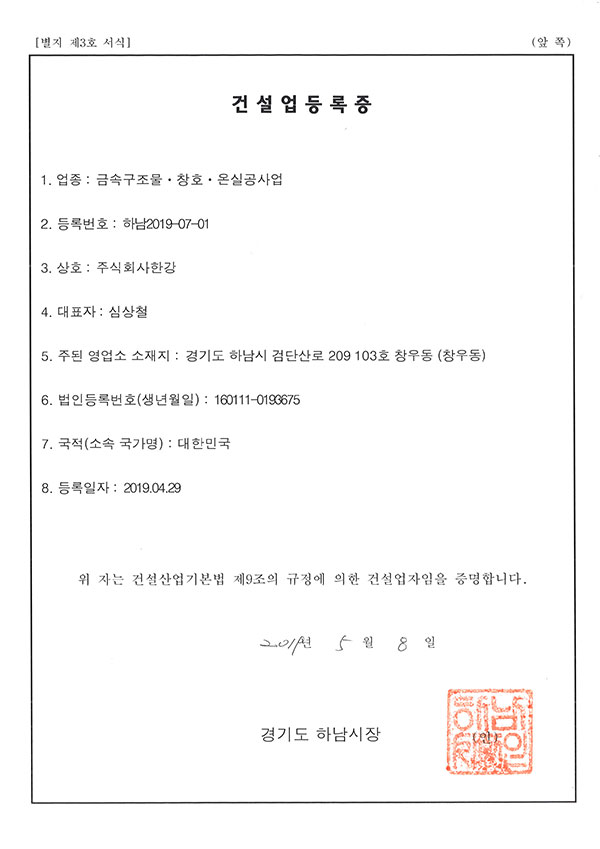 건설업등록증(금속구조물)