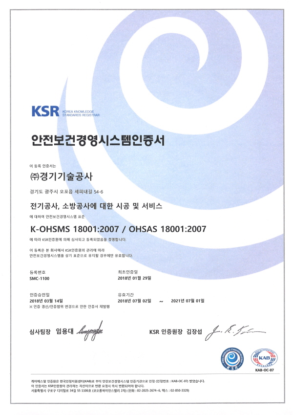 안전보건경영시스템인증서