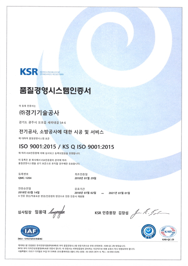 품질경영시스템인증서