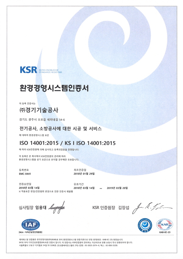 환경경영시스템인증서